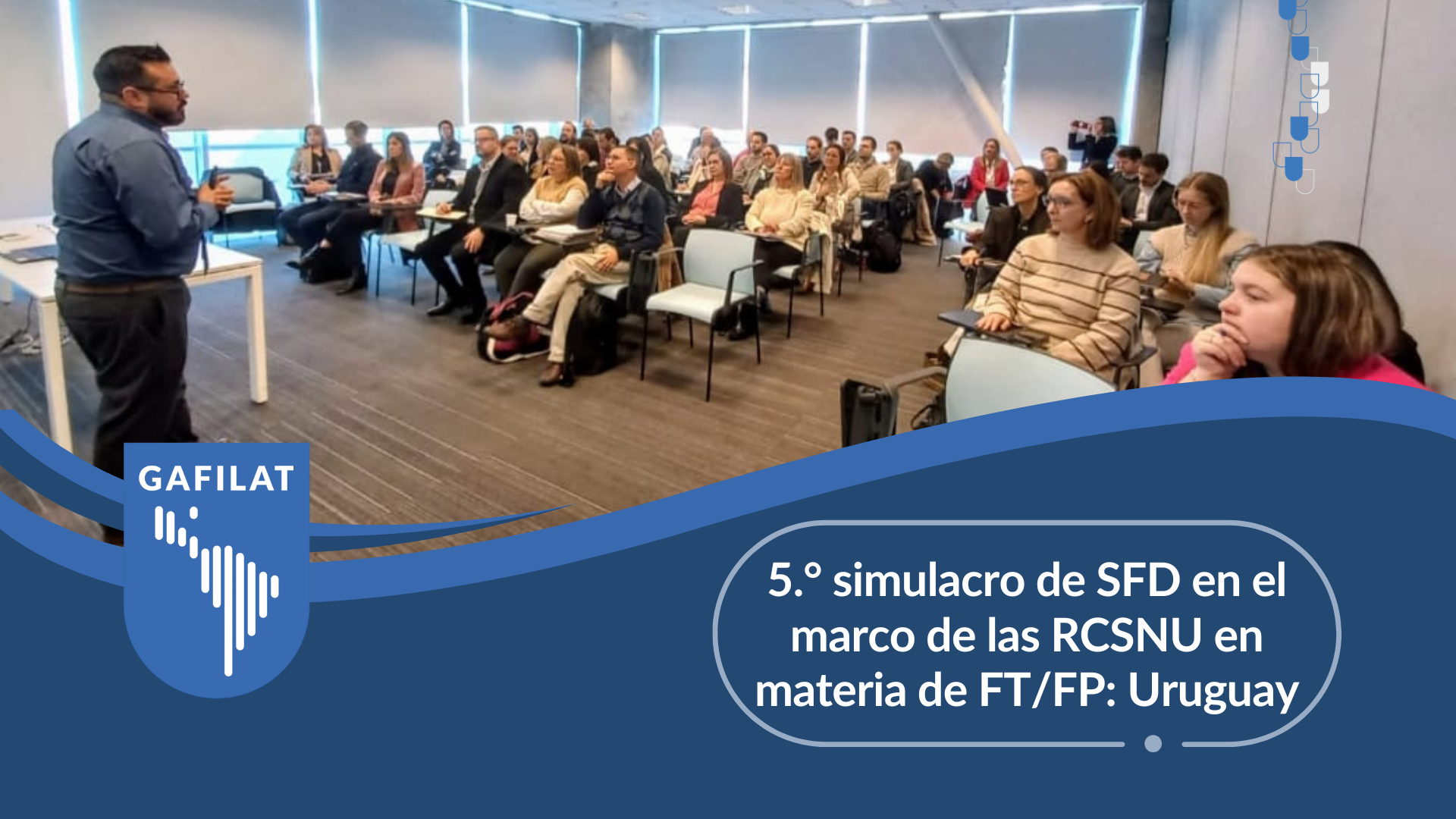 Durante los días 20 y 21 de agosto de 2025, el Grupo de Acción Financiera de Latinoamérica (GAFILAT), llevó a cabo en Montevideo, Uruguay el quinto simulacro de implementación de Sanciones Financieras Dirigidas (SFD) derivado de potenciales coincidencias con las listas de sanciones de las Resoluciones del Consejo de Seguridad de las Naciones Unidas (RCSNU) en materia de financiamiento al terrorismo y la proliferación de armas de destrucción masiva.